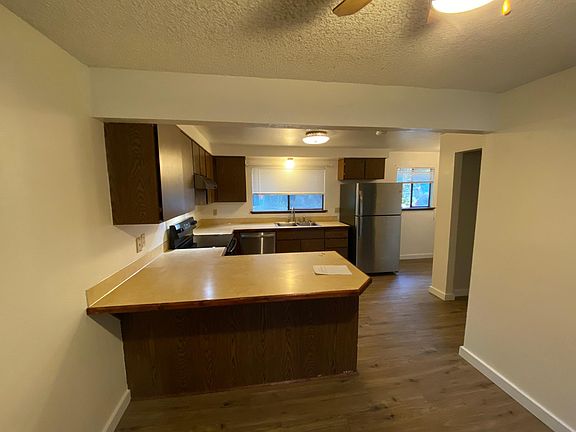 New exterior paint and windows. Recently updated unit including newer washer/dryer set. Close to town, desirable hillside location! 2 bedroom, 1.5 bath, 1 car garage, with water & septic included! Water/Septic included. 1-year Lease. Credit/Background check on Adults ($40 each). Full month Rent + Deposit to move in.