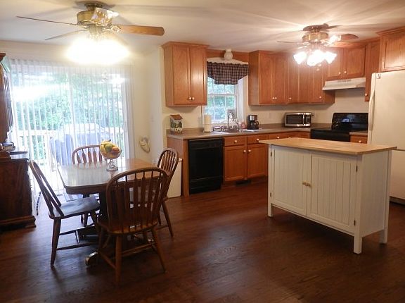 Open concept L-shaped ranch with large eat in applianced kitchen with sliders to deck, crown molding and new hardwood from Canada. Master has a 3/4 shower w/ 2 seats. Home features two more bedrooms on main level w/ceilings fans throughout. Finished lower level family room with french doors and hardwood floors. Lower level 4th bedroom which would be fantastic for teens hideaway and a studio w/track lighting, heat for a 5th bedroom. Laundry room has plumbing for sink. Walk out to patio area. Plenty of storage, wired for internet, underground drainage, total of 9 ceiling fans. one owner home and smoke free.