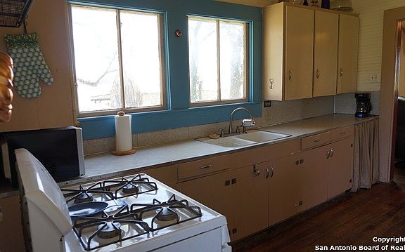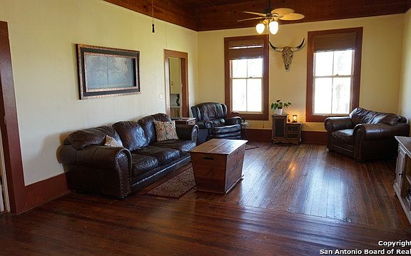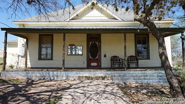 Enjoy peaceful, country views in this charming historic home on 10 acres. Recent updates to electrical & plumbing. New front porch. Easy drive to Kerrville, Fredericksburg, Boerne, & only 40 minutes to San Antonio! Several out buildings: game room w/ attached carport, workshop, 2 storage sheds, 1300 gallon water storage system w/ well house & horse stall. Chicken coop, fenced garden, 20x24 carport & 15x30 covered RV parking. Hunt white tail, axis, & dove. Trailer, Camper, BBQ Pit, & Gas Grill do not convey.
