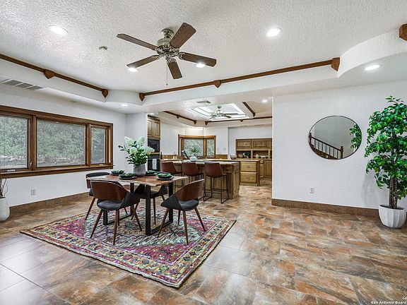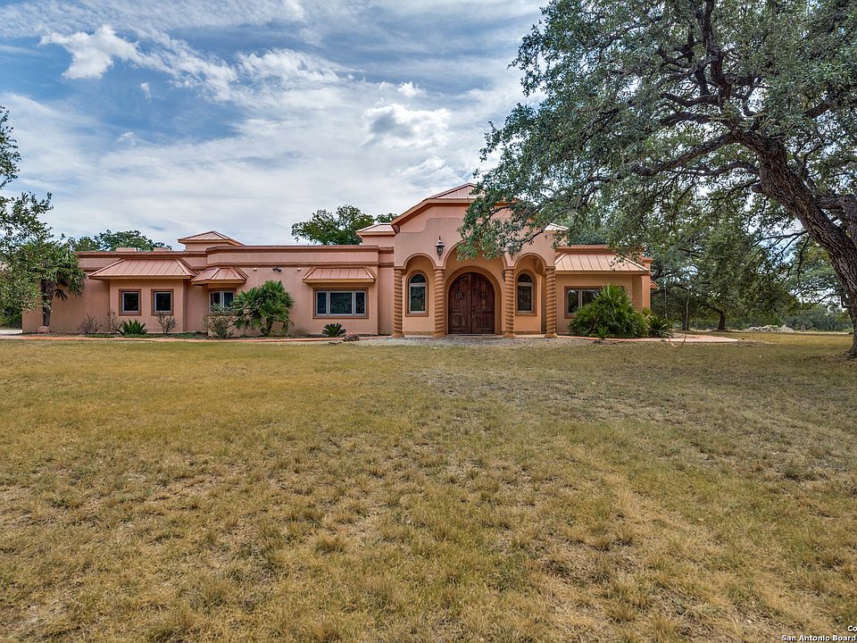 BRING ALL OFFERS!! Discover exceptional Hill Country living in this luxury custom ICF home on 5.01 acres in Spring Branch, TX. Thoughtfully designed for strength, efficiency, and comfort, this 4-bedroom, 3.2 bath home features insulated concrete form construction with tornado-resistant walls, superior noise reduction, and exterior walls reinforced with 8-10" of concrete and styrofoam- providing durability, rot and mold resistance, and outstanding energy savings. With average electric bills around $150/month and no water bill, no sewer bill, and no HOA, this property offers unmatched value and sustainability. All bedrooms are convniently located on the main level, with only a loft upstairs, and open-concept layout allows effortless flow throughout the home. The spacious kitchen is an entertainer's dream with a wrap around island, dual sinks, and abundant cabinetry and counter space. Additional highlights include a dedicated office, an indoor pool ideal for hosting or fitness, and a concrete safe room at the center of the home for added peace of mind. The primary suite is a true retreat with dual vanities and a large walk-in shower, and the entire home is handicap accessible. Fourth bedroom ideal fora mother-in -law suite, private guest quarters, or potential rental space. Featuring its own kitchenette and private bathroom, this area offers all the essentials for day to day living without sacrificing connection to the rest of the home. Storage is plentiful and the property includes 3 garages - one oversized for an RV or a boat. Appraised at over $1M and priced for a quick sale. Don't miss your chance to make it yours!