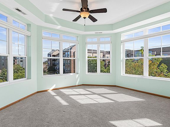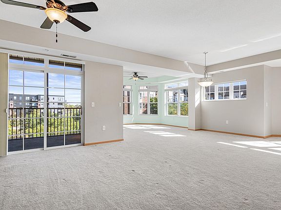 Silver Lake Village community offers plenty of amenities just steps from shopping, dining, walking paths, transit and more. This third floor condo welcomes you in with a spacious open-concept and tons of natural sunlight. Take in the wonderful pond view and live summer music series at Salo Park from the screened in deck. Curl up and relax in the three-sided sunroom or by the gas fireplace. Smartly designed kitchen with pull-outs in lower cabinets, under cabinet lighting, stainless appliances, granite counters and open to dining area. Escape to your own private primary suite complete with custom designed walk-in closet and oversized bathroom. Upgrades include Remote Control Blinds Throughout Installed 2022, New Furnace and A/C 2021, Professionally Painted 2021, New Carpet 2021, Custom Closet Shelves 2023, New Washer 2021, Screened Porch/Maintenance Free Decking 2022 and many updated fixtures throughout. Some of the complex amenities offered are the courtyard with firepit and gas grills, workout room, guest suite, party room, individual locked storage room, secured underground parking and more. This condo comes with two dedicated garage spots.