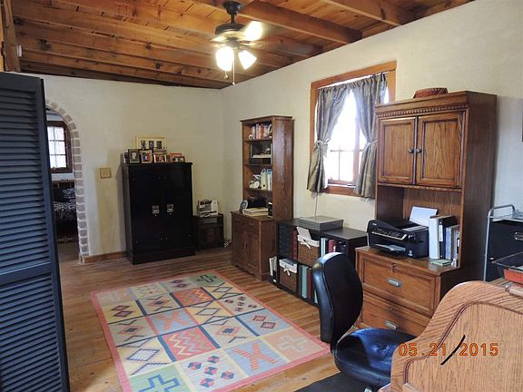 A MUST SEE! Great country living in an adobe home with all wood flooring and ceilings. Motor (RV) hook up with canopy and a separate garage/workshop. A wraparound porch around the house with beautiful mountain view for relaxation and great cookouts. Some very nice southwest furnishings will stay as they complement the style of the home.