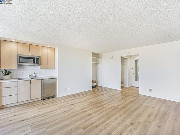 Perfect location! Light filled studio unit in a Berkeley Townhouse Co-op for residents 55+. Unit is on the 3rd floor - stunning partial view of Berkeley Hills from the enclosed lanai with sliders. Beautifully updated flooring, kitchenette, including stove top, microwave, built in refrigerator, and cabinets! Common space is located on the main level, offering lounge areas, dining tables, ping pong, TV watching area, and a spacious outdoor patio where you can enjoy some sunshine and greenery. Near shops, restaurants, UCB and easy access to public transit.