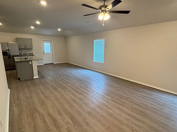 This one-story home features 4 bedrooms and 2 bathrooms. Enjoy the large open-concept living room, fully equipped kitchen with energy-efficient appliances, ample counterspace, and corner pantry. The laundry room, conveniently located just off the garage, is perfect for any sized family