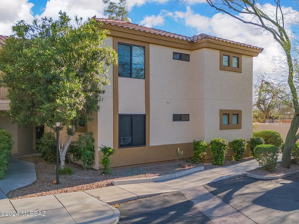 Step into luxury with this captivating 3-bedroom, 2-bathroom first-floor condo spanning 1296 sqft in the coveted Hacienda Del Sol community. Nestled within a gated enclave in the Tucson Foothills, enjoy exclusive access to the serene Rillito River Park.Indulge your culinary passions in the kitchen, adorned with stainless steel appliances including a newly installed microwave and dishwasher this year and granite countertops, complete with a breakfast bar for casual dining. Custom pull-out shelving enhances the functionality of this property, seamlessly integrating convenience and organization into every space. Revel in the seamless flow of tile flooring throughout, leading to a spacious covered patio perfect for alfresco entertaining. The desirable split floor plan ensures privacy, with the primary suite offering a tranquil retreat. Community amenities abound, including a fitness center, heated pools/spas, and more, offering a resort-style living experience right at your doorstep. Don't miss the opportunity to call this exquisite condo home in one of Tucson's most desirable locations.
