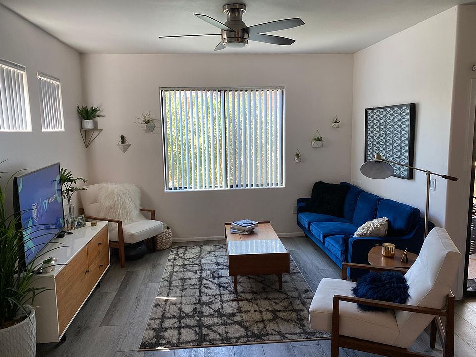 This property is centrally located in Tucson with easy access to the Rillito River Walk and within walking distance of St. Philip's Plaza and the Rillito River Park Farmer's Market. The community sports two pools, plenty of outdoor grilling areas, as well as a gym on property. This unit is on the second store with freshly painted walls with new floors and new microwave. The unit has great lighting and has a lovely patio for soaking up these beautiful Tucson days. Renter is responsible for their own utilities, including electricity and internet. HOA covers water and trash. Small dogs and cats are OK. Smoking is not allowed. The unit comes with one covered parking space along with ample uncovered parking near the unit.