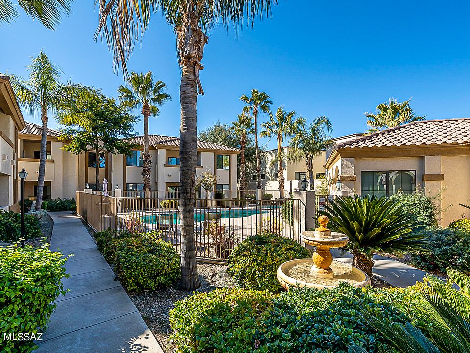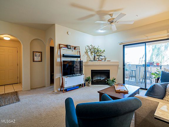 Don't miss this 2 bedroom 2 bath condo in the highly sought-after Villas At Hacienda Del Sol nestled at the base of the Catalina Foothills. This condo is overlooking the Rillito Riverwalk within steps of your private gated entrance to miles of paved paths for walking and biking. Features a spacious split floor plan with fireplace, newer water heater, and large covered balcony with storage closet. Owner's suite includes a walk-in closet and private bathroom. This exclusive gated community offers resort-style amenities including two pools and spa, fitness center, BBQ Ramada's, covered parking, and is all within walking distance to St Philip's Plaza with high-end shopping, restaurants, farmers market and more.