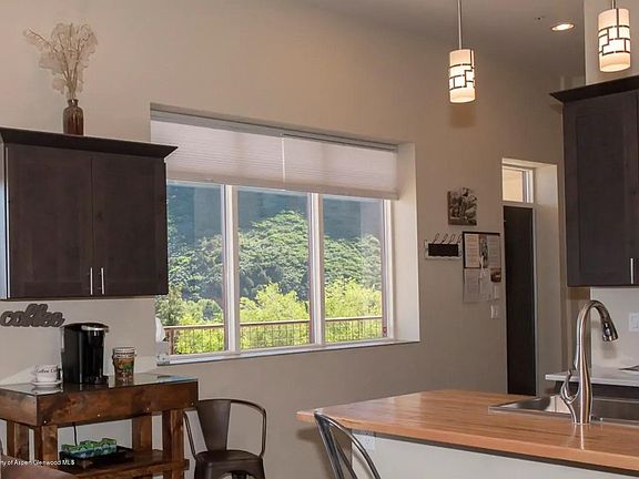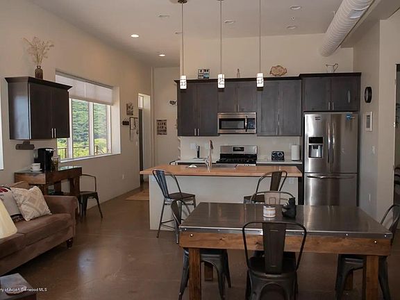 High end furnished condo currently being used as an AIRBNB with great history. Contemporary loft style with high end finishes. AC, heated tile floors in both bathrooms, built in home office, on demand hot water and gas range. Approx 1000 s/f private patio in the back. Great views of Mount Sopris and Red Mountain. Walking distance to restaurants, Walmart shopping center and other amenities. Must use a local lender for a portfolio loan as it is non-warrantable due to mixed use of commercial and residential property.