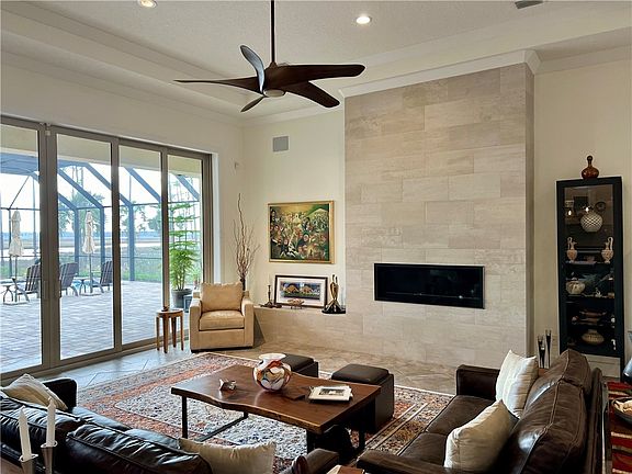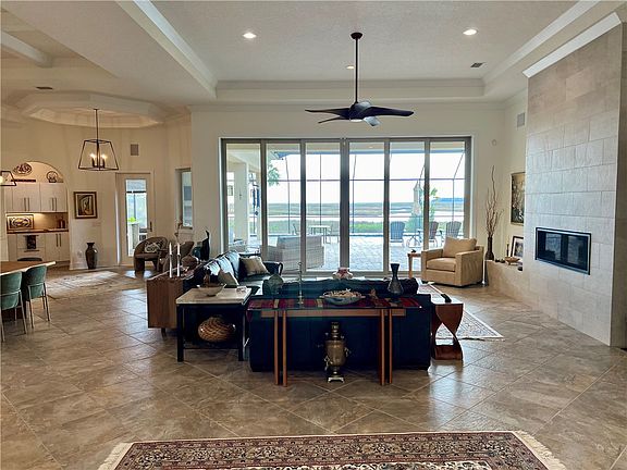 Experience spectacular water views, refined architectural design and luxury at every turn in this stunning one-of-a-kind custom home! The attention to each detail of this home shows it was meticulously planned from the lot selection throughout the building process. The expansive, open living area with over 12” ceilings that encompass the great room, dining area, kitchen, breakfast area and wet bar. The gourmet kitchen is a cook's dream and boasts a vaulted ceiling, two islands with waterfall granite, custom cabinets, upgraded appliances, an induction cooktop, wine refrigerator and a large walk-in pantry with adjustable shelving. The large great room has tray ceilings, a gas fireplace and a full wall of pocketing doors showcasing the beautiful view and transitioning your indoor living into outdoor living with an over 2700 sqft screened lanai. There, while enjoying coffee or a meal, you can enjoy peaceful, quiet time or beautiful sunrises. The lanai includes a heated saltwater pool with lap lane, outdoor kitchen including a large gas grill with range hood, refrigerator and sink, a dining area and an additional living area with a gas fireplace. The large owner’s suite has access to the lanai, beautiful views, two walk-in closets with custom shelving and a large ensuite offering a walk-in shower with waterfall wall panels, soaking tub and double vanities. A second primary bedroom offers amazing views, access to the lanai and an ensuite with double vanities, walk-in shower with waterfall wall panel and a walk-in closet. Two additional bedrooms offer ensuite baths, including showers with waterfall wall panels. This home also offers an office, located off the great room, with tray ceilings and classic glass doors. An office nook with built in cabinets, a half bath with access to the lanai and a laundry room with abundant cabinets and storage options finish out the home. Additional features include: many windows for natural light, crown moulding, wall niches, tile floors, ceiling fans in all bedrooms, great room and office, water softener and too many others to mention. This Parr Builders’ custom home is located in the gated, golf community Osprey Cove, a Waterfront Golf and Social Club. A social or golf membership may be acquired through The Club at Osprey Cove. The club amenities include golf, tennis, boat ramp, exercise room, outdoor pool, Clubhouse restaurant and the Tiki Bar. Conveniently located to Jacksonville International Airport, beaches, restaurants and shopping. If you’re looking for a home with the “Wow” factor - this is it! Schedule a private tour to see this amazing home.