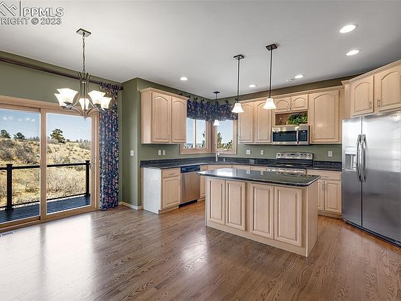 Don't miss this spectacular Peregrine home with 5 bedrooms and nearly 4400 finished sf * Versatile floorplan with a MAIN LEVEL MASTER SUITE with a spacious 5-piece bath & TWO walk in closets * Granite counters in the eat-in kitchen, sliders out to the new composite deck, plus a big center island, built in desk, stainless appliances, TONS of cabinet space, and room for a big kitchen table! * Formal dining room * Inviting Living Room with soaring 2-story ceilings, fireplace, and access to the deck * Main level office at the front of the home with built-ins and plantation shutters * Main level laundry room * Finished walkout basement with a cozy den/media room with built-ins and a fireplace * Large basement Rec Room with a wetbar and sliders out to the covered lower deck * Central A/C, attic fan, ceiling fans and a humidifier * Newer windows& sliders! * Pristine hardwood floors * Tons of storage space, big closets and even a crawl space! * Very pretty stucco exterior * Oversized 3 car garage is EV ready with 240V charging plug * Coveted, upscale neighborhood close to incredible hiking trails, parks and award-winning D20 schools * You'll love living on this flat culdesac with a southern exposure - snow melts right off the driveway! Prime lot with no back neighbors, and views for days of city lights, Black Forest, Blodgett Peak and USAFA grounds just across the street