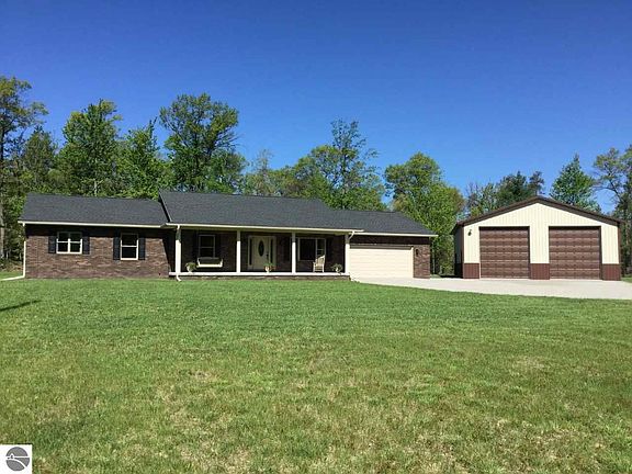 BEAUTIFULLY MAINTAINED HOME! Gorgeous all brick maintenance free exterior, three-bedroom, two bath ranch built in 2017. Located on 10 MOSTLY WOODED ACRES on a paved, county maintained road. Property is 660 x 660 and is bordered by state land on three sides, close to ORV and snowmobile trails. Home has hardwood floors, fantastic kitchen with unique quartz counter tops, full basement that could be finished to your liking, living area with Bose surround sound speaker system, master suite with walk in closet, first floor laundry area with cabinets, fiber optic internet, 12 x 18 stone patio, insulated and finished attached two car garage, whole house generator and newly paved driveway!! For storage there is a 36 x 48 pole barn with 14' walls! Popular all sports Clear Lake and the Rifle River Recreation Area are just a short drive away.