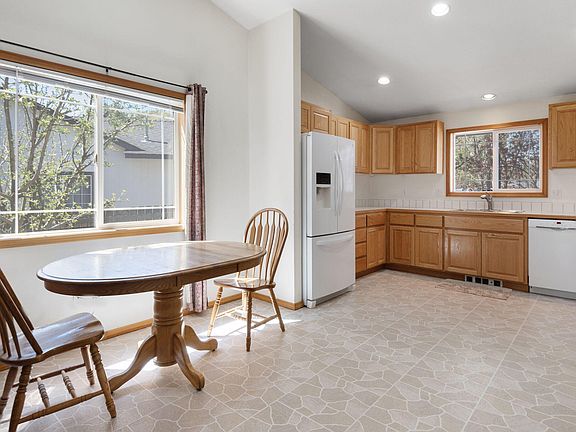 Well-maintained single-level home nestled on a cul-de-sac. An attractive great room floor plan, vaulted ceilings, abundance of natural light for the perfect blend of functionality and warmth. Spacious kitchen boasts ample oak cabinetry and generous counter space. Open dining area w/large southern-facing window, new Lennox mini split ductless heat pump. Wood stove with travertine tile hearth. The generous primary suite includes a walk-in closet, a private shower, and a linen closet for added storage. Fully fenced .15-acre, level, corner lot, established older growth trees, shrubs with a small rock outcropping. Complete with an 8' x 16' back deck perfect for outdoor gatherings. This property also features an 11' x 40' graveled RV parking area on the side of the garage, with potential room for a boat, trailer, or other recreational vehicles. Prime location close to hospital, shopping, restaurant's and just down the street from Al Moody Park. Offering both tranquility and accessibility.