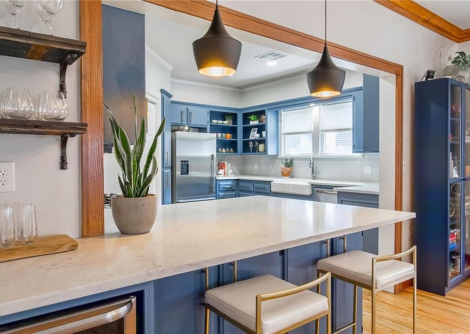 LOCATION and CHARM! Located in the sought after Crestwood addition. This home is loaded with perks! Updates include open kitchen concept with quartz countertops, updated backsplash, gas range, stainless steel appliances including refrigerator, built-in bar area with wine refrigerator, remodeled bathroom (2019), interior/exterior paint, new exterior doors (2017), tankless hot water (2017) Nest thermostat, gutters including garage (2017). Large, over-sized garage with built-ins plus storm shelter and an automatic gate for privacy to the backyard area. Backyard offers fire pit and a large yard space that is perfect for entertaining! Located in the heart of OKC! MULTIPLE OFFERS- HIGHEST AND BEST DUE 03/21 by 5:00 P.M. ***