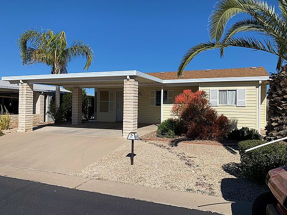 This home is located in a very nice 55+ gated community with many amenities for you to enjoy and is conveniently located. Easy access to the 60 and the 202 freeways. Close to many eating establishments, medical facilities, and shopping. This beautiful home is just waiting for someone to move in and enjoy it. Has new hot water tank, updated kitchen cabinets and counter tops, new washer and dryer, updated fans and lights, new roof, new sunscreens in Az room, insulated laundry room/shed with fan, Laminate floors, and new microwave, Island in kitchen with power, and side by side parking. You must see this beauty. This home Any questions please Call Gary at Cardinal Homes at 480-586-5554.