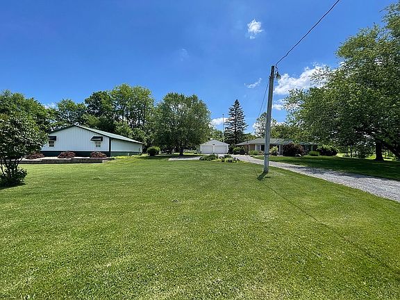 Over 2 acres of quiet country property with lots of trees and wildlife around you. Yet only 5 minutes to Angola. A Large pole building/office/shop, and 2 - detached two-car garages. Golden Lake is just down the road to enjoy fishing and boating. This country setting is on a wooded lot with shrubs and flowers and within the Angola School District. The views are fantastic with rolling farm fields and woods nearby. This all-electric home has 2 bedrooms and 1 and 1/2 baths. All the appliances come with the sale including a wood burner stove, fireplace, and central air conditioning! Plenty of room for storage with 2 detached garages, 2 utility sheds, and a large pole barn. The large vegetable garden is perfect for growing your own and canning just about anything. The property has several apple trees on a peaceful, country setting. Cash or conventional financing only. AS IS.