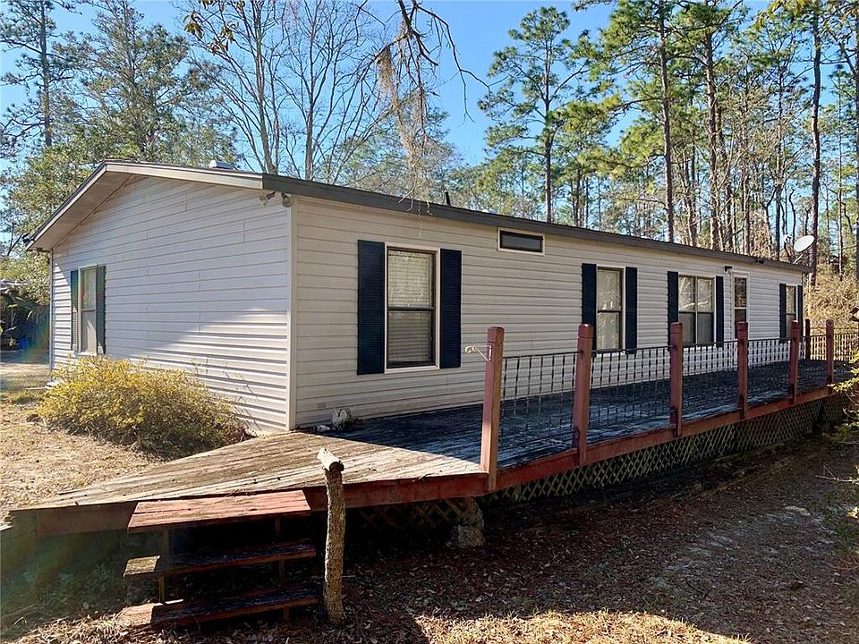 Private country corner lot on 2.5 acres. Home is a 1992 double wide mobile with 3 bedrooms and 2 bathrooms. Extra room off to the side could be used as a bonus room, office or playroom. Lots of room outside including a shed with power that can be used as a workshop or storage and a 2 car carport. New roof put on 2015.