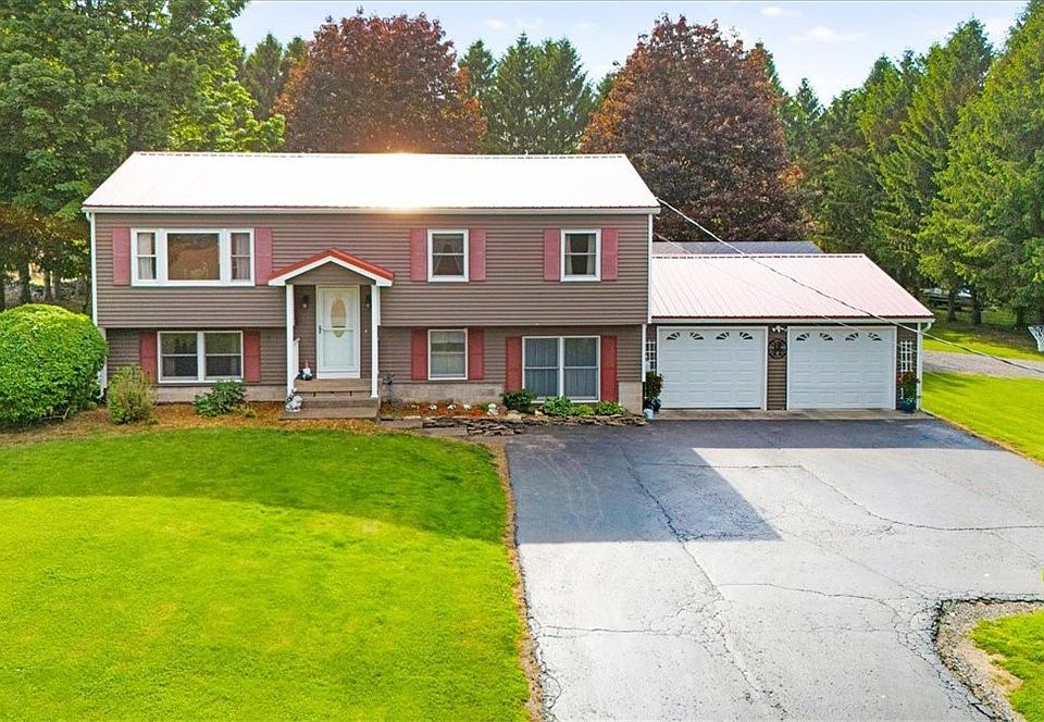 Welcome to this stunning split level home nestled on quiet country road just outside the village . This Charming property has been lovingly maintained by the same owner for 32 years . It sits on a private 1.1 acre lot surrounded by a all natural pines for ultimate privacy . The home features solid surface countertops , showcasing quality craftsmanship throughout . Enjoy ample storage and parking with with 4 garage spaces which includes the attached garage and the barn out back where more vehicle stoarage is available . Beautiful outdoor space with pavers and firepit and a park like setting is to die for . The beautiful covered outdoor porch will delight in the best experience country living has to offer .Dont pass on this move in ready gem , take note of a few updates being offered , the roof windows and siding are only 5 years old , New well pump only 2 years old . AC and heat pump only 3 years , as well as newer update bath . Seller is ready for a quick close bring your family get moved in and get situated for the holidays .