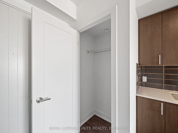 Welcome to sophisticated urban living with this beautifully designed 1-bedroom condo that boasts premium finishes and an efficient, modern aesthetic. This unit also comes with a convenient surface parking space. It's the perfect turnkey home for first-time buyers, young professionals, or investors looking for a high-demand rental. This condo has been freshly painted and offers an open-concept living space, perfect for both relaxing and entertaining. The primary bedroom features a stunning floor-to-ceiling window, filling the room with natural light. From the balcony, you can enjoy a breathtaking, unobstructed North-East view. Gourmet KITCHEN Highlights: The heart of this home is a contemporary kitchen built for style and function. Prepare to be impressed by: Sleek, contemporary design cabinetry providing ample storage. Elegant Quartz countertops offering durability and a pristine look. A stylish Porcelain tile backsplash for a refined finish. A practical single-bowl stainless steel undermount sink. The kitchen features a seamless, integrated appliance package perfect for a modern lifestyle: 24 Stainless Steel-Faced Fridge, 24 Cooktop and Wall Oven, 24 ComboHoodfan/Microwave, 18 Integrated Panelled Dishwasher (blends right into the cabinetry!). Spa-Like BATHROOM Highlights: Relax and unwind in the luxurious bathroom, featuring high-quality materials throughout: Porcelain 12 x 24 floor tile for a clean, modern foundation. Coordinating Porcelain wall tile for a cohesive and high-end feel. This condo is a must-see for anyone who values sleek design and premium finishes in a compact, desirable package. Don't miss your chance to step into this contemporary gem!