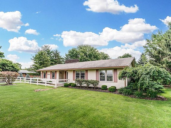 Welcome to your very own country resort, situated on one and a half acres yet minutes from shops and restaurants! Inground pool and patio area is ideal for entertaining and secluded with privacy fence and landscaping. Owners suite offers private access to pool area for superb privacy and relaxation. Beautiful vaulted wood ceilings with cedar beams and HUGE fireplaces has that western retreat feel! Home has three bedrooms and three full baths, recently updated. Newer flooring. Cozy Kitchen w/island. Sauna room. Large Laundry room. Lots of storage including a FOUR CAR GARAGE and separate Amish built shed. Don't miss out on this perfect location!