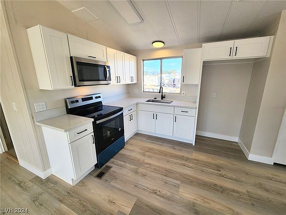 A fully remodeled 3-bedroom home on 1/3 acre for sale in Pahrump, NV. This property features a new roof, AC, paint, flooring, and fixtures. Conveniently located near medical facilities, shopping, and town amenities. No HOA, community well and private septic. A practical and modern living space in the center of Pahrump—your next home awaits.
