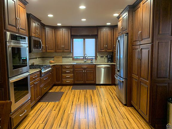 This one is sure to go fast! Totally immaculate home in northwest Emporia within walking distance to Timmerman Elementary, Emporia Middle School and Emporia High School. This four bedroom, three bath ranch was remodeled a few years back on the main floor by Lore & Hagemann. The remodel was complete with custom kitchen cabinets from Custom Wood Products in St. Marys Kansas, Quartz countertops, Strand bamboo floors, updated bathrooms with custom cabinetry and ceramic tile. The basement consists of a large family room, two bedrooms, updated bath and tons of storage. Sump pump has battery backup. Outside you will find plenty of space to relax and make memories on these hot summer days around the in-ground saltwater pool. Enjoy the beautiful landscaping, garden shed for storage and back patio for grilling. Maintenance free Alcoa vinyl siding, oversized two car garage, newer roof and sprinkler system complete the outdoor amenities. You will fall in love with this home and all that it has to offer. Nothing to do but move in!
