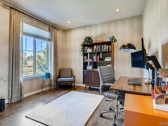 Welcome home to your former model home in the beautiful Terrain community! This stellar home sits on an amazing lot overlooking the community and has incredible sunrises; imagine enjoying a cup of coffee on your new deck looking at the views! Walk inside and fall in love with the dramatic entryway with vaulted ceilings. Sunny office space with luxury wall paper and picture windows creates an ideal space for home office or school area. Continue to the heart of the home and be instantly WOWed by the chef's kitchen with stainless steel appliances, granite countertops, large island with ample prep space and breakfast bar, and a walk in pantry! Your spacious dining room flows seamlessly between the kitchen and back deck overlooking the open space behind your home and flat yard. Cozy living room with pictures windows allows natural light to flow through. Upstairs, you'll find a loft that has limitless uses; additional home office, playroom, movie theater room. Two secondary bedrooms upstairs provide plenty of closet space. Secondary bathroom with dual sinks, custom tile work, and plenty of storage in your upgraded cabinets. Upstairs laundry with utility sink is the ultimate in convivence located between the bedrooms. Private master suite is the ideal space to unwind at the end of a long day. En suite master bathroom has high end finishes that make you feel like you're in a spa! Your newly finished walk out basement provides an additional living room and play area. Outdoors, you'll fall in love with your large, flat backyard backing to a greenbelt. Watch the animals and enjoy the quiet. This home is located close to neighborhood schools and parks, Terrain features 2 pools, and a dog park. Close to Downtown Castle Rock, hiking, biking, and trails, this home is sure to delight!