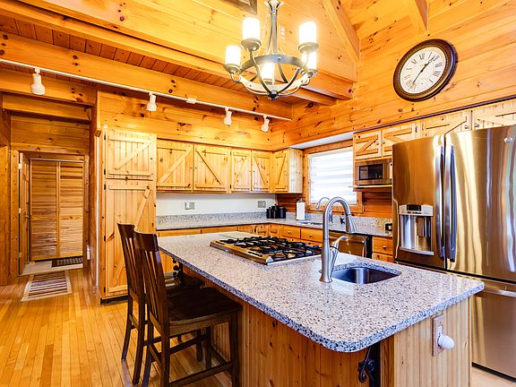 SLEEPS 10 --FANTASTIC OPPORTUNITY TO OWN A CUSTOM BUILT LOG HOME WITH DETACHED GARAGE, located in a quiet gated community close to all area attractions and never before been placed on an overnight rental program. This cabin offers an open and airy floor plan, with three levels of living space, three+ car garage, large shed, two wrap around decks, high vaulted ceilings, and an abundance of closet and storage space. Extra wide concrete driveway. The fully equipped kitchen is complimented by an island bar with sink and gas range, and spacious amounts of cabinet and counter space. The large master suite in loft offers a spacious walk-in closet and custom designed bathroom with relaxing whirlpool tub and separate shower. The lower level offers outside entrance from the walk around deck to a game/recreation/den room equipped for a pool table, bonus space with separate closet space, full bath, extra storage space, and convenient access to the heating and cooling system enhanced with a backup generator. This cabin is simply a must see, offered at a great price, LISTED BY JERE KRIEG -CRYE-LEIKE REALTORS -(865) 458-3000 CALL (865)755-3099