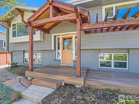 Welcome to 2550 Woodstock Dr, a beautifully updated 4-bed, 2-bath home in Boulder's sought-after Table Mesa neighborhood. Remodeled for modern living inside and out, this home blends clean design with quality finishes, upgraded systems, professionally designed and maintained outdoor spaces. Inside you'll find hardwood acacia floors, fresh paint throughout, and abundant natural light. The kitchen was fully remodeled in 2023 featuring LG appliances, including a large-capacity fridge and stove, wood cabinetry, and top of the line finishes. The bathrooms were updated in 2018 with new plumbing and heated floors for added comfort. All closets feature Elfa storage systems. The HVAC systems and water heater are newer, and an upgraded electrical panel was installed in 2020 to provide ample power for all your home and charging needs. No corner of this home was left untouched. Enjoy smart home conveniences like central A/C with Nest thermostat and keyless entry, updated windows and light-filled French doors that open to a spacious Timber Tech deck equipped with two built-in heaters, a full outdoor kitchen, and plenty of entertaining/eating space with great Flatiron views. The outdoor living/garden spaces feature a 'smart-controlled' 4-zone irrigation system, drip lines to all plantings, and landscape/outdoor lighting all professionally designed by Marpa, Boulder's top landscape design firm. (Don't miss the secret veggie garden tucked behind the huge, detached garage) Enjoy the meticulously landscaped front yard from the upgraded front porch and seating area. An insulated, heated, oversized 628sf garage provides ample room for two cars plus gear, storage, and workshop space. As a "2.5 car garage" it could be a great footprint for adding a similarly-sized ADU. Located minutes from top-rated schools, South Boulder Rec Center, miles and miles of hiking trails, and Table Mesa shopping, this home is a dream. Everything has been done-just move in and enjoy the best of Boulder living.