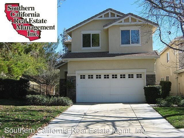 Three Bedroom Home with Loft in Stevenson Ranch - Wonderful three bedroom home at the end of a cul-de-sac with large back yard. A nicely landscaped front yard leads to the tiled entryway. The entryway opens to the formal living room and dining room. The kitchen has ceramic tile counter tops and flooring, recessed lighting and has a sliding glass door leading to the back yard. Kitchen appliances include: stove top, oven, stainless steel dishwasher and refrigerator. The family room has a gas fireplace, flat screen TV and entertainment niche. There is a half bathroom downstairs. The hallway upstairs has a bookcase. The laundry room has a full size washer and dryer and built in cabinets. There is a spacious loft upstairs with ceiling fan and wood laminate flooring. Two guest bedrooms with ceiling fans and mirrored closet doors. Full guest bathroom with double sinks. The master bedroom has vaulted ceilings with ceiling fan a walk in closet. The master bathroom has double sinks and ceramic tile flooring. This home is located conveniently close to the 5 freeway, shopping, restaurants and a PGA golf course. *Owner may consider a dog. No cats. * Tenants will need to obtain Renters Insurance. Proof of insurance will be needed at lease signing. DO NOT DISTURB OCCUPANTS PRIVATE PROPERTY - NO TRESPASSING To schedule a viewing appointment, please call: Southern California Real Estate Management at (661) 255-7600 or email: leasing@screm.com. Application Fee of $30 per applicant. Rental Applications may be downloaded from www.screm.com. We have more homes available in the Santa Clarita area please visit our website at: www.screm.com * Valid Photo ID will be required upon sign-in at our office prior to viewing any of our properties with our leasing agents. Directions: From SCREM office turn right on Valley Center Drive. Turn right on Soledad Canyon Road. Soledad becomes Valencia Blvd. Continue on Valencia Blvd. and go past the 5 freeway and turn left onto The Old Road. Turn right on Stevenson Ranch Parkway. Turn right on Hemingway. Turn right onto Burns Place. House at the end of the cul-de-sac. Directions are for Drive-By purposes only and scheduled appointments DO NOT DISTURB OCCUPANTS PRIVATE PROPERTY - NO TRESPASSING SECURITY DEPOSIT: 1 MONTHS RENT MINIMUM, 2 MONTHS RENT MAXIMUM No Cats Allowed (RLNE4717228)