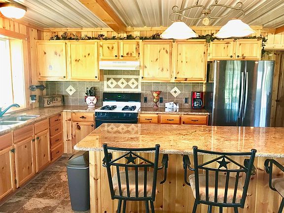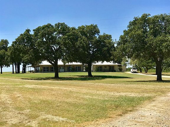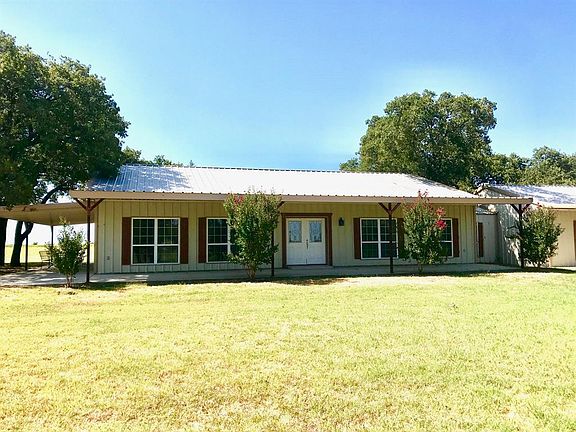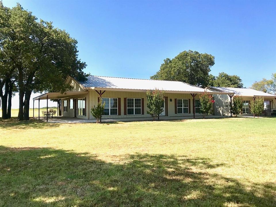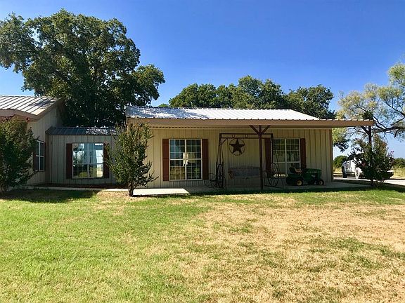 All metal home with wrap around porches, granite counter tops and a large island to gather around after a long day. Neutral toned home with tile throughout is nestled among Post Oak trees on a small hill & has a garage attached by an enclosed breezeway. Behind the house is a 2400 sq ft metal shop with a 1400 sq ft canopy on the West side for parking equipment, a set of cattle pens sits behind the shop. There are approximately 115 acres of Tifton 85 Bermuda grass for exceptional hay production & remainder of the acreage is pasture with native grasses, Mesquites and Oaks. There are 2 additional stock tanks on the place with a heavily wooded South end which makes for excellent hunting.