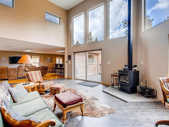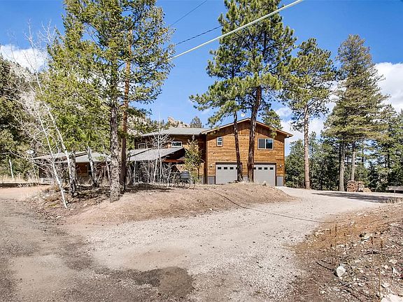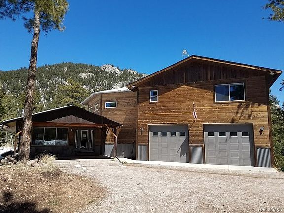 Absolutely gorgeous home w/amazing views in Aspen Park - great access to shopping, schools, restaurants & public transportation! Original cabin was built in 1957 - a 2 story addition & oversized garage were added in 2015 along w/roof, siding, windows, electrical, plumbing throughout. You can see the quality of the construction! New well pump & newer septic too. Kitchen w/ breakfast bar, concrete counters, "beetle kill" wood cabinets & SS appliances. Great room features a Lopi wood stove to provide warmth & ambiance on cold winter days. Master suite w/2 walk in closets, skylight, lots of windows & bath w/huge walk in shower. Upper level features flex space, 2 bedrooms & full bath. Big composite deck for entertaining. 6 panel wood doors throughout, recessed lighting, wired for media, built in speakers. Oversized attached heated 2 car garage with 9 ft doors & 10 ft ceilings, carport for additional parking + level driveway for the rest of your toys! 2 big crawlspaces for extra storage.