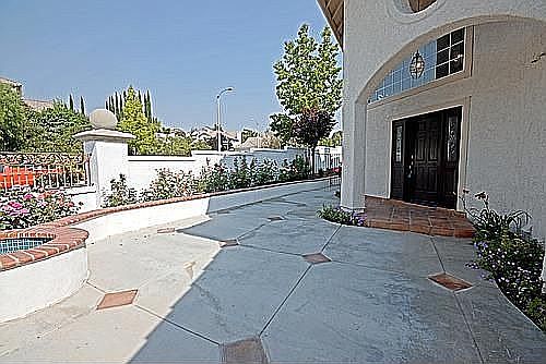This newly remodeled and spacious Stevenson Ranch home has everything you need. Enter through a gated and tranquil front courtyard that features a custom water fountain and romantic rose garden. Upon entry you are met with an expansive formal living and dining room that have gracious vaulted ceilings and an abundance of natural bright light from the varies large windows. The Chef's kitchen is comprised of boutique appliances, a large kitchen island and new counters and backsplash. This immaculate and recently reimagined home has 5 bedrooms, 3 bathrooms with new vinyl flooring, designer hardware and custom window shades throughout. The upstairs features 3 bedrooms and 1 bathroom plus the elegant master suite. The master bathroom has a mosaic tiled tub and mirror doored walk in closet. The backyard is a great retreat space where you have your own private sparkling pool with a new glass safety fence, lush landscaping and built in barbecue allowing for the ideal indoor/outdoor entertainment experience.