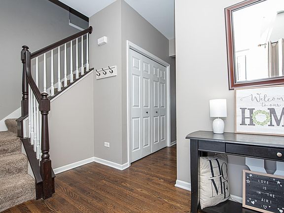 Prepare to fall in love with this incredible 2-story home nestled in the popular Hunters West subdivision. Sundrenched open concept home updated in today's colors. Dramatic Family Room with stone fireplace and wall to wall built-ins with vaulted ceiling. Light and bright eat-in Kitchen with tons of cabinets, countertop space, and stainless-steel appliances. Living Room and Dining Room combo. Cozy Master suite with vaulted ceiling and ceiling fan, ensuite with whirlpool tub, and separate shower. The 2nd floor is also home to four additional generously sized bedrooms, a hall bath, and the conveniently located Laundry with shelving for storage. Huge finished basement space with wet bar, game area, and additional living room space with full bathroom. Check out the outside oasis! Huge covered deck with a separate step-up area and a place for outdoor cooking, paver patio, fire pit, shed, an above ground pool in this private fenced in yard. Close to schools, expressways, shopping, and more. Furnace and AC 2020, Roof 2016.