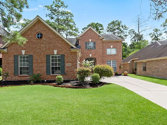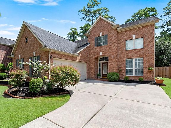 The perfect Village Builder home conveniently located in a gated, tree-lined community featuring 3 lakes, 6acres of walking trails, swimming pool, playground, tennis/volleyball courts. Enter through the grand entryway into spacious rooms spawning feelings of warmth & relaxation. Freshly painted and professionally cleaned carpet. All the desirable comforts a family home should provide are right here: family room w/gas fireplace, formal dining, private study/library w/built-in bookshelves & French doors, modern kitchen (electric & gas) w/wrap around breakfast bar opening to the family room, upstairs game room, 4 oversized bedrooms & closets, 2.5 baths (Jacuzzi tub and separate shower in the primary), 2 car garage w/extra storage. Private fenced yard overlooking the greenbelt reserve. Upgrades include double sinks in primary bathroom and countertops finished with Avanza, a natural non-porous and heat resistant Quartz. Only a few blocks from I-45, retail centers and family healthcare.