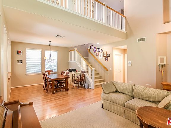 A beautiful huge size backyard with a view! 4 bed 2.5 bath home is located in desired Stevenson Ranch area. Two full bathrooms are located upstairs and the third bath is located in downstairs. The master bedroom and bath overlook the spacious backyard with a view. All 4 bedrooms are located upstairs. The Living Room, Family Room and Kitchen all work well together in open space. Very Bright and Light floor Plan with High ceiling & Recessed LED lights through the house. Smart-Home features including WiFi Thermostats and Ring. Wood Shutters, Covered Patio in large beautiful backyard. Great location with easy access to the 5 freeway, a good rated schools, shopping center, park and more. HOA covers front yard.
