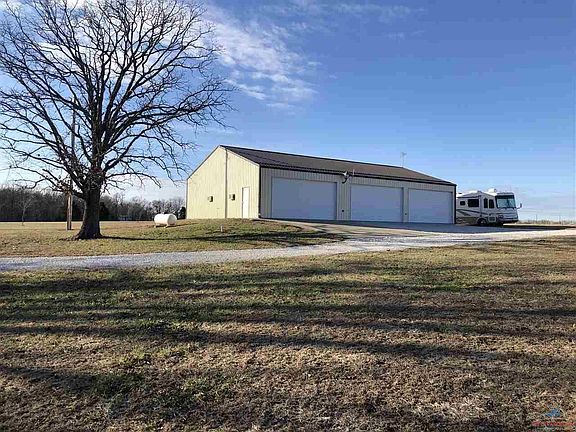 Unique Opportunity! Terrific 1,784 sq ft home- all one level, 26 acres m/l- perfect mix of open/timber with food plot, great hunting! Blacktop frontage. Attached 36 x 28 garage with large all concrete storm shelter and steel door. Very nice 64 x 40 metal building with 40 x 24 shop heated/cooled with bathroom. Home has 3 Br, 2 Ba, CH&A, large kitchen with stone island, all kitchen appliances, office area. Large master Br with huge walk-in closet, large bath with dual sinks, garden tub, oversize shower. Large covered deck. Tons of Wildlife.