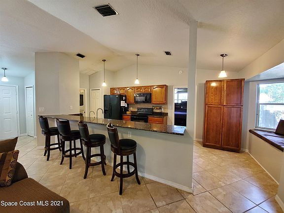Buy this beautiful home on .85 of an acre in West Melbourne. This split floor plan has vaulted ceilings, new a/c system, tiled floors in main living areas, carpet in bedrooms, an open floor plan, granite countertops, master walk-in closets, French doors to exterior, eat-in kitchen bar top, black appliances, inside laundry, screened in porch, RV/Boat space, water softener system and a fenced yard. Quiet county living while being close to shops, restaurants, parks and schools.