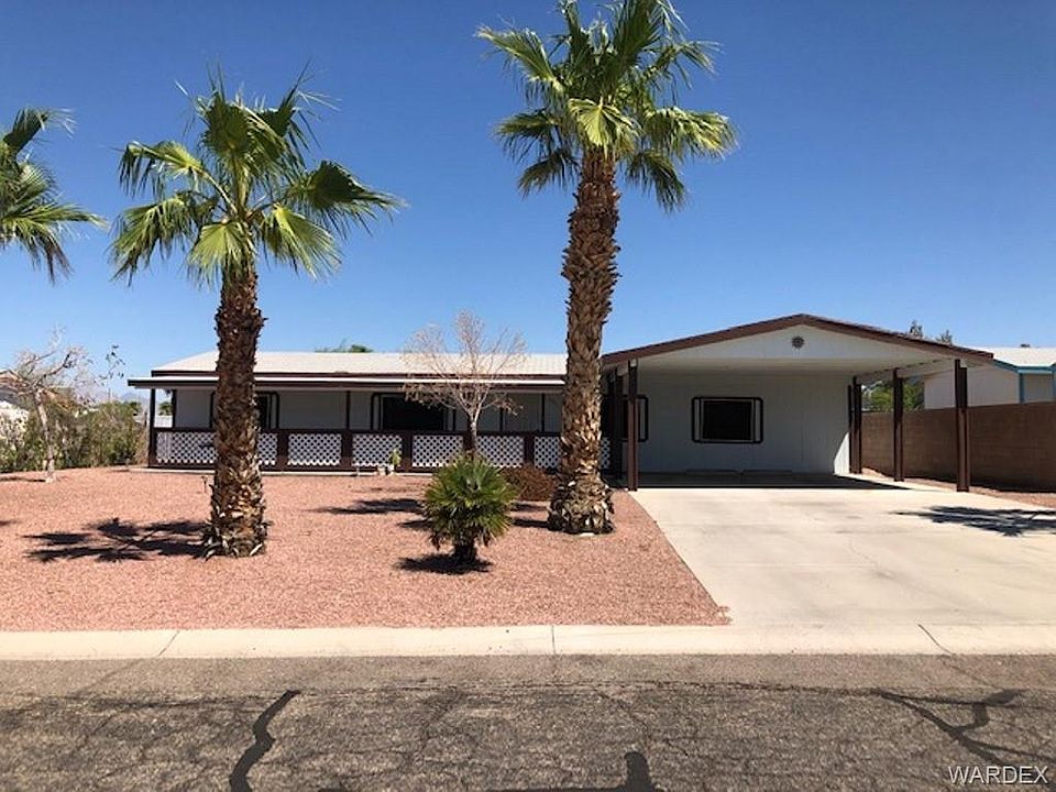 Live Fort Mohave, AZ~ Spacious 4 bedroom 2 bath home in popular Sunrise Vista. This 1344 sq ft home features vaulted ceilings, ceiling fans, window coverings and more. Home has a Semi open floor plan with casual dining and laundry room with a covered carport and covered front porch to watch our arizona sunsets. Yard has desert landscaping for low maintenance, storage shed, block wall with wrought iron gates and a large back patio to watch the beautiful sunrises. Close to schools, shopping, and the Colorado River.
