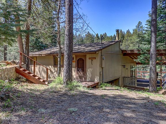 Escape the heat at a 7000' elevation in the glorious Prescott National Forest! This cabin sits on 2 mining claims, and is away from the hustle and bustle. Just past Potato Patch, no HOA, gurgling seasonal creek and clean air. 2 rooms used as bedrooms, 2 full baths, half level down is living/dining/kitchen and decks.