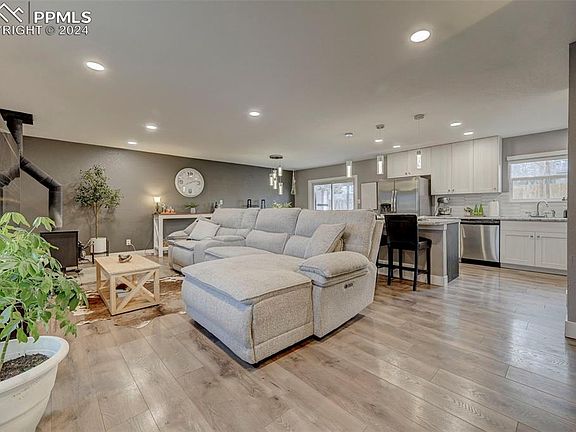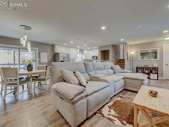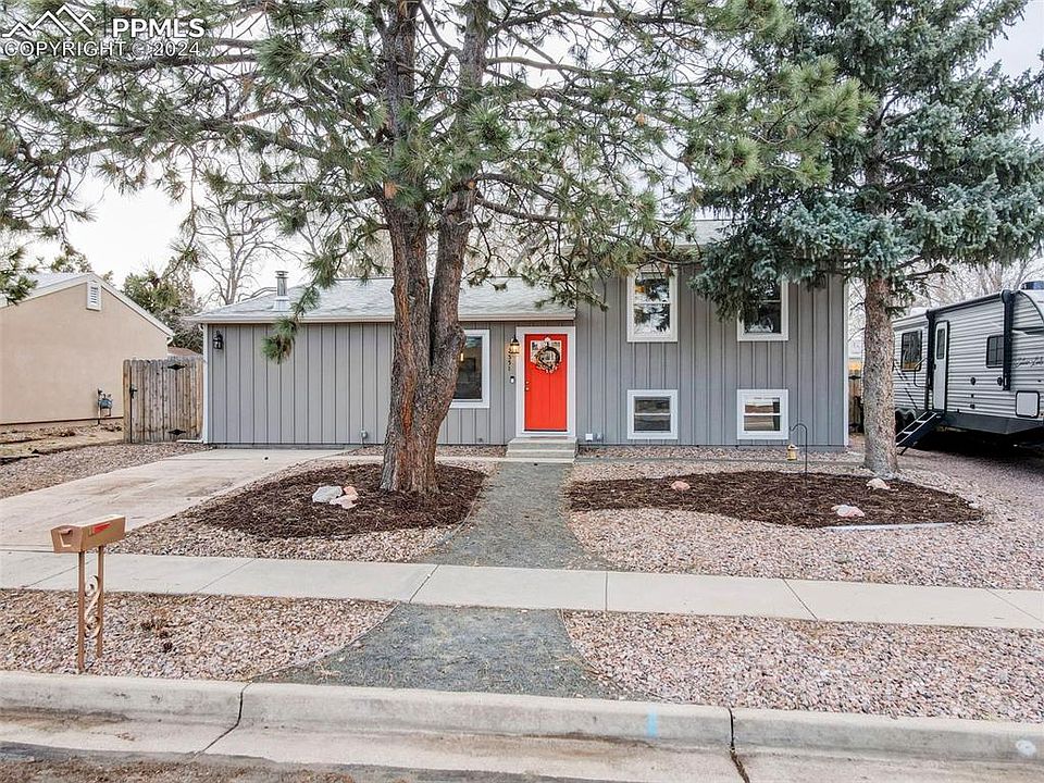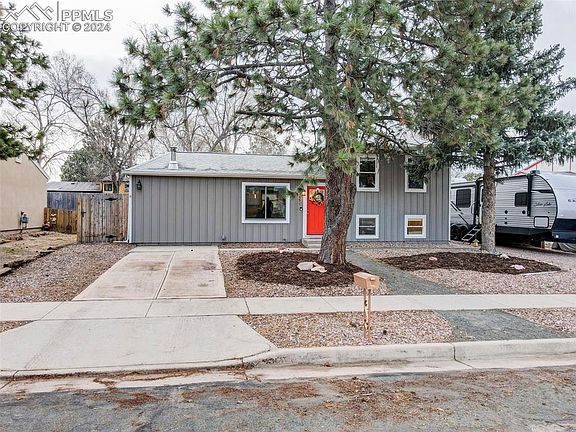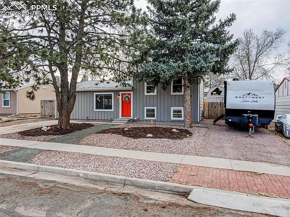 This incredible home has been updated from the outside to the inside. Driving up to the home the yard has gorgeous mature trees surrounded by xeriscaping for minimal lawn maintenance. The house has been painted with a fun pop of color on the front door which welcomes you into the remodeled main living area. The updated flooring throughout the entire home beckons you into the open concept living area with a cozy wood burning fireplace as a focal point. The eat-in kitchen has matching stainless steel appliances, new cabinetry with ample space, and a bar stool height center island adding extra counter space for the at home chef. A bonus to the main level is the walk out to the spacious backyard with wonderful entertaining features including a covered wooden back patio with a separate patio area that has a picnic table, fire pit, and pergola with swing. Back inside the upper and lower levels have plush carpeting as you enter the bedroom areas. Upstairs has two bedrooms with a full bath and the downstairs has bedrooms three and four with a full bath. This home comes with many updates and features and one last bonus is the RV parking and located with access to I25 and the Powers corridor for access out of town. The airport is also minutes away adding to the appeal for prime location and overall gorgeous home.
