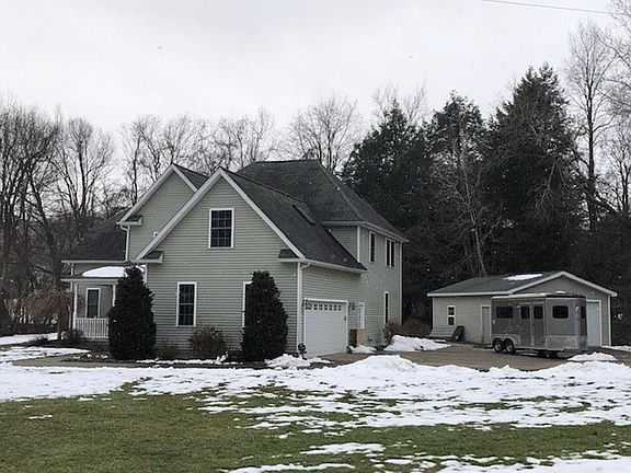 Beautiful home on 1.49 acres. 1st fl. master bedroom suite w/walk in closet and access to patio, new shower stall w/new glass door, jacuzzi tub & double sinks too! The family & dining room are vaulted - 1 huge room - with brazilian hardwood floor & pellet stove to warm up to. Custom kitchen w/pantry, bev. refrig, granite counters. Lower level professionally done with theater/bar room and stairway to garage. Extra detached 20x30 garage. Stamped concrete patio & walkway. 1 Yr. AHS Home Warranty.