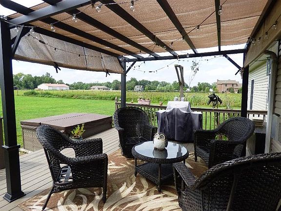 Lovely 2081 SF 3 BR 2.5 BA ranch on 2+ acres offering 9' ceilings, open fl. plan,large tiled foyer, formal dining, great room w/gas stone FP, large eat-in kitchen w/beautiful white cabinetry, granite countertops, tile backsplashes, S/S appliances, laundry rm, 4-season sunroom w/vaulted ceiling & walkout to rear deck w/pergola & hot tub. Pt basement