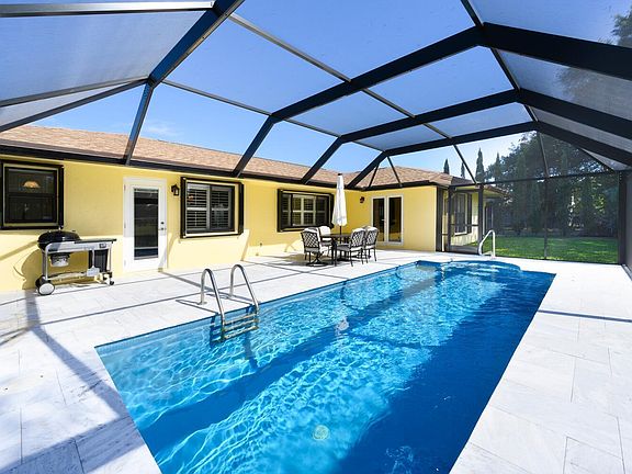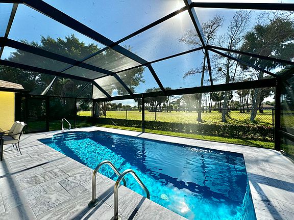 WELCOME TO YOUR DREAM HOME! Nestled in the highly sought after Lone Pine Estates is this one-story gem, meticulously upgraded with $85,000 in recent renovations. From the moment you arrive, you'll be captivated by the marble pool deck and walkways (2024), leading to the new screened patio enclosure with a picturesque view. The resurfaced salt-water pool (2024) sparkles under the Florida sun, creating a serene and inviting atmosphere. And the roof was replaced in 2024.Step inside to discover a spacious floor plan filled with natural light and beautiful views of the blue pool, visible the moment you walk through the glass French doors. The kitchen, upgraded in 2023, features white cabinetry, granite countertops, a white and silver stone backsplash, and a new sink and stainless stove. A dedicated laundry room with a washer and dryer adds convenience, and there's ample storage throughout, including walk-in closets and custom wood blinds.