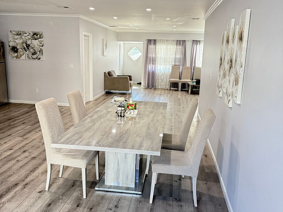 Welcome to this beautifully updated home in the heart of Montrose. This spacious, open-concept residence perfectly blends style and comfort with modern upgrades throughout. The kitchen is a showstopper, featuring sleek cabinetry, quartz countertops, a large island with bar seating, and stainless steel appliances brand new stove ideal for both everyday living and entertaining. Sunlight fills the living spaces, highlighting the laminant flooring and recessed lighting that create a warm and inviting atmosphere.
