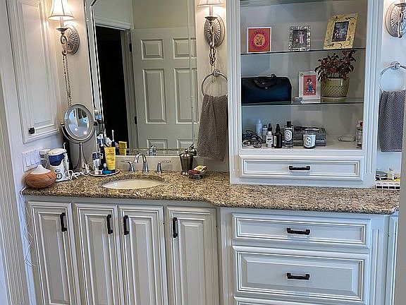 The home is amazing with a chef's kitchen. Granite counter tops, stainless steel appliances. Hardwood floors and wood shutters. The sunroom has new windows that afford amazing views of the back yard shade garden, the pool area and the large backyard. The backyard also features a pool house with a full bath, separate air conditioner and separate water heater. There is a playhouse/storage building with a window unit for great storage or clean it up and paint it for an amazing play house.
