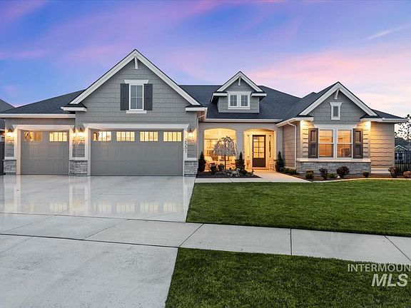 Discover the perfect blend of modern elegance and comfort in this impeccable single-level home, designed with premium finishes and high-end features throughout. Boasting 3,214 sq. ft. of living space, this 4-bedroom, 3.5-bathroom residence offers an open floor plan with vaulted ceilings, custom cabinetry, and designer lighting. The gourmet kitchen is equipped with top-of-the-line Thermador appliances, quartz countertops, and an expansive island. A spacious cathedral vaulted great room with a gas fireplace, a luxurious master suite, and an entertainer’s dream backyard with an extended covered patio make this home truly exceptional. Enjoy breathtaking views of Bogus Basin from the front of the home and take in the gorgeous Idaho sunsets from the back patio. Every detail has been carefully attended to, ensuring a pristine, move-in-ready home. Located in a desirable Eagle community with resort-style amenities, this home is ideal for those seeking luxury, functionality, and style in a prime location.