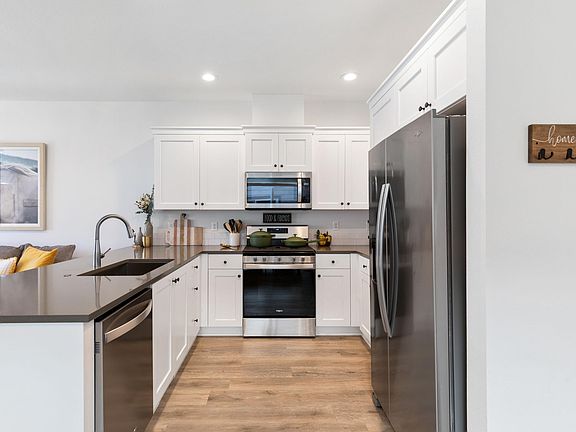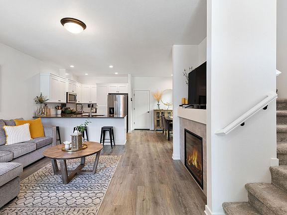 Here is your highly desirable and immaculate end unit townhome from Pahlisch Homes. This home boasts many upgrades including A/C, Smart Thermostat, Ring Camera, Smart Lock and electric fireplace. This well cared for home was built in 2020. The open floor plan features first level living space with kitchen and breakfast bar, dining room and a warm inviting living space. Upstairs opens up to a bright and open loft, the primary suite features a spacious walk-in closet, solid surface dual vanity, and upgraded faucets. Upstairs you will also find two additional guest rooms and a full bathroom. The enclosed side yard great for a BBQ or pets. A convenient NE location puts you close to schools, shops, parks and medical facilities.