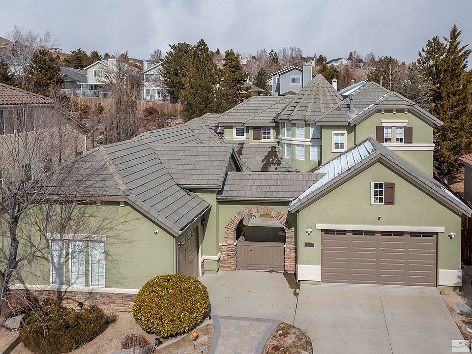 A rare find in Evans Creek Estates 6, this 2990 sq ft home is one of five built in the development. Very desirable and open floor plan. The master suite, bedroom/office and all living areas including 2 1/2 baths, are on the main level. Two large bedrooms, Jack-n-Jill bathroom and loft are upstairs. Real gleaming hardwood flooring, stone fireplace in family room, covered courtyard, large laundry room, large master bath with walk-in closet and spacious kitchen/breakfast nook. 40 minutes to Lake Tahoe., There are no neighbors across the street (which is grass landscaped and maintained by the HOA). The front yard is maintenance free. The front door is accessed through a welcoming courtyard. The backyard features mature well-kept landscaping with a large covered patio and a built-in BBQ and pizza oven that are fantastic for entertaining or just relaxing. An additional beautiful gazebo adds to the charm. The constructed storage shed/greenhouse stays with the home. The spacious master bedroom leads to the back patio, perfect for a hot tub. 12 minutes to Reno Tahoe International Airport, 10 minutes to downtown Reno, near exceptional shopping and three minutes away from nature trails along the Steamboat Waterway.