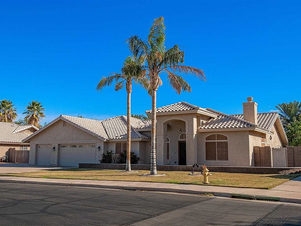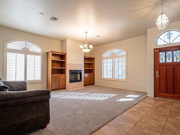 HUGE PRICE DROP ON THIS FIVE BEDROOM home with all new carpet through-out!! Tile kitchen, dining and walkways! Custom wood interior shutters. Fireplace! Kitchen granite counter-tops with all appliances open to family room. Split floorplan concept. Plant shelves, surround sound. Generous Ensuite with French door entry, bay window, bathroom has dual granite sinks, garden tub, separate shower, walk-in closet! Three bathrooms in this home! 3 car garage with BI storage, cover patio w/ storage shed!