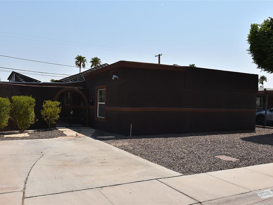 This home has been completely remodeled inside, new baths, kitchen and floors, Absolute stunning beauty in the heart of Yuma. Spa like master bath- 5 spacious bedrooms, lavish living, 3rd bath in 5th room. You will be breathless when you see the amount of talent that was expressed in this private home with a court yard and lots of patio space. Exceptional home either for primary or rental market. No carpet tile through out entire home. Refrigerator stays.